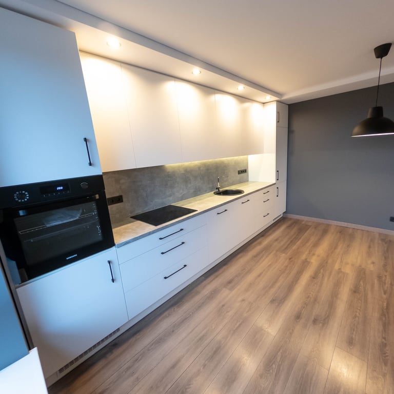 Žemiau rasite mūsų atliktų darbų pavyzdžius, nuo paprastojo, ekonominio lygio įrengimo iki apartamentų su sudėtingais interjero sprendimais.